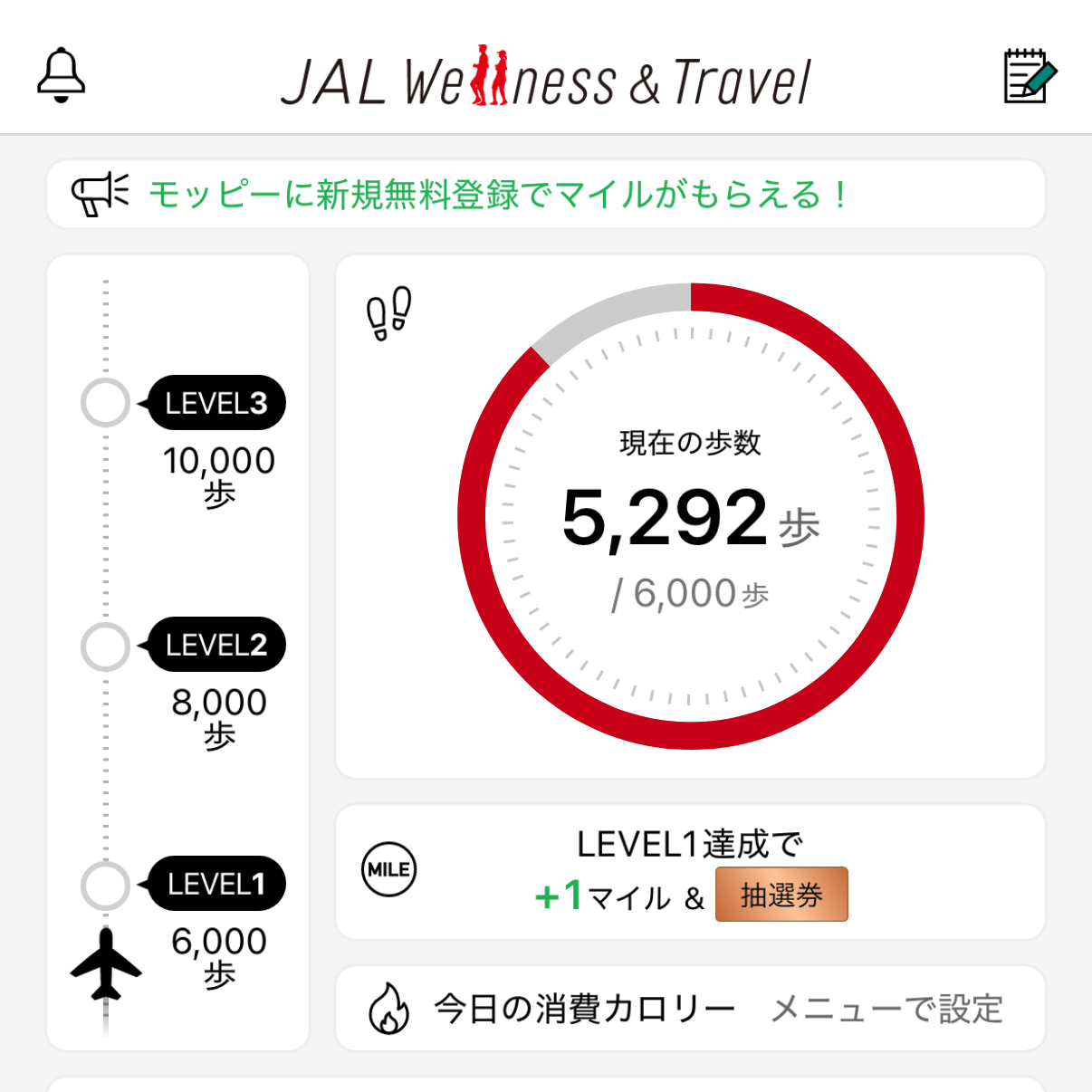JAL Wellness & Travelは、スマートフォンの歩数計データと連携し、デイリーチャレンジ・ウィークリーチャレンジ・マンスリーチャレンジ・チェックインチャレンジを達成することでマイルがもらえるサービスです。